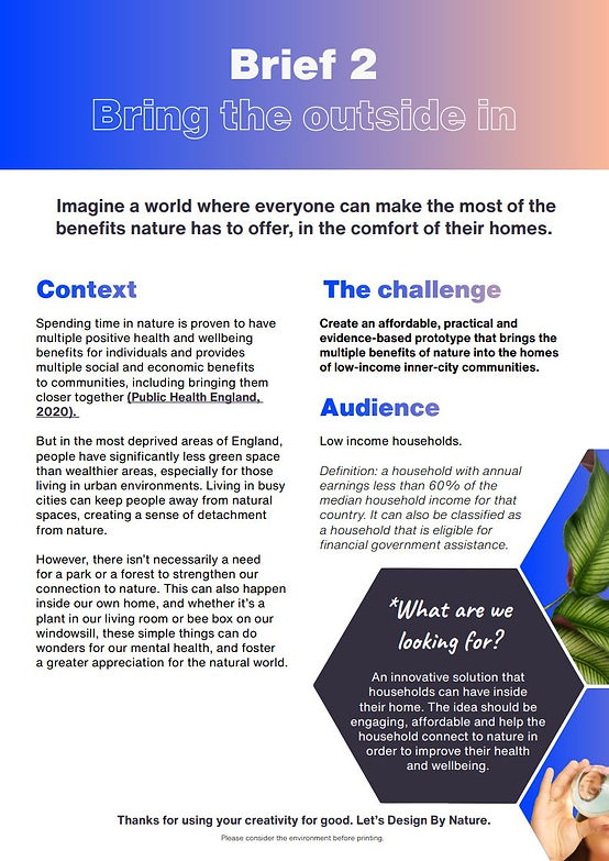 As apart of our social design module in second year, we looked towards the Hubbub Design by Nature competition. Hubbub is an award winning environmental organisation who run creative campaigns to encourage positive everyday actions for the environment. As apart of what they're about, they run the Design by Nature competition that celebrates creativity in designing for tough environmental issues. Each year they submit three briefs to choose from. We chose brief 2 and ended up becoming one of the few shortlisted entries, with our work being celebrated all over their social media pages and website!