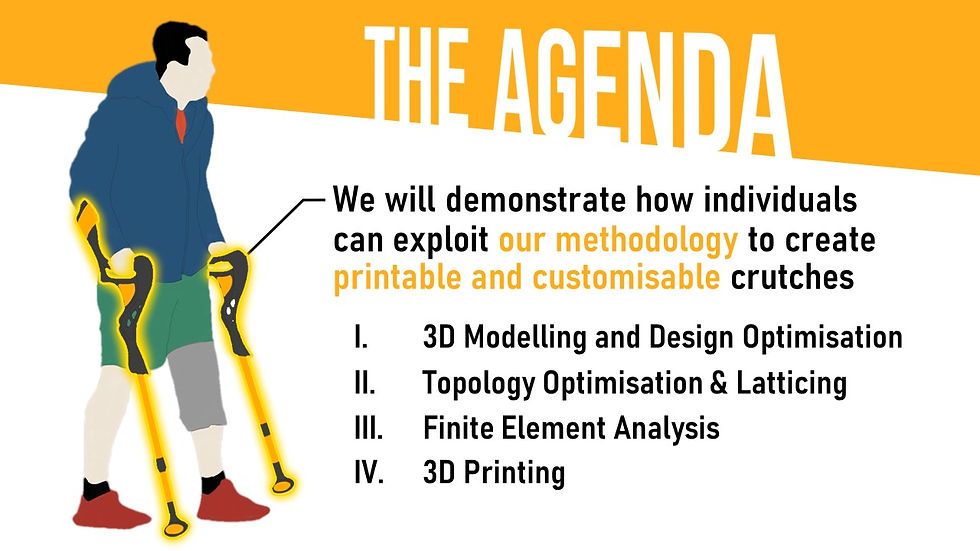 This case-study aims to demonstrate how computational design methods and FDM 3D printing can be used to design, optimise and manufacture a novel, yet user specific forearm crutch. This crutch is compatible with components from conventional crutches whilst being fully manufacturable with entry-level AM systems.